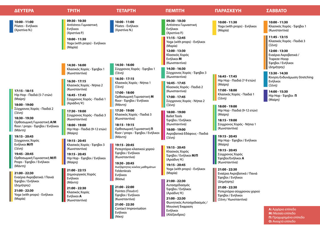 A: Αρχάριο Μ: Μεσαίο Π: Προχωρημένο Ο: Ανοιχτό