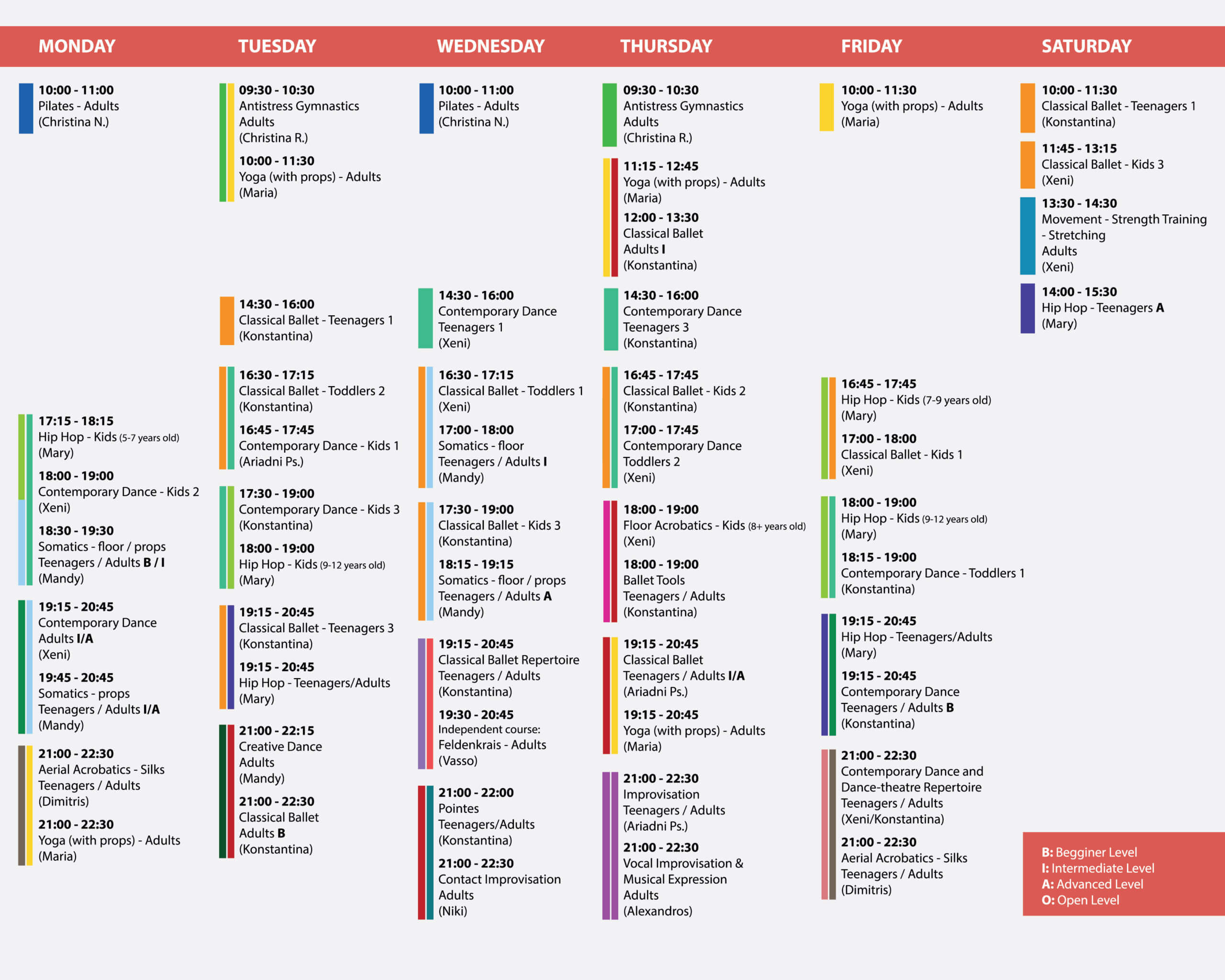 B: Begginer Level I: Intermediate Level A: Advanced Level Ο: Open (All Levels)