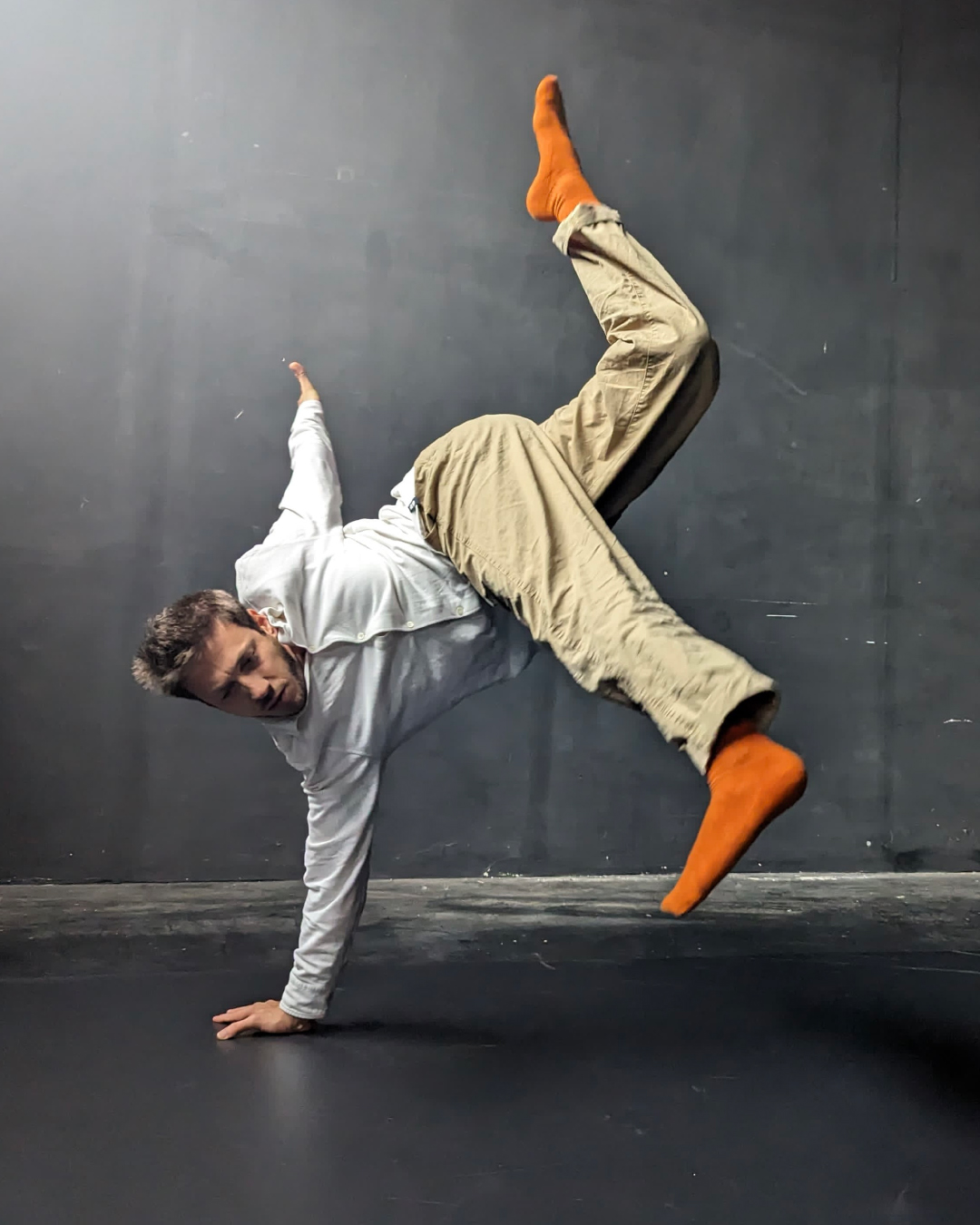 Κατά τη διάρκεια αυτού του 4ήμερου εργαστηρίου θα μοιραστώ το τεχνικό μου υλικό acrodance, συνδυάζοντας ήπιες ακροβατικές τεχνικές, σύγχρονο χορό και λεξιλόγιο floorwork, καθώς και στοιχεία αυτοσχεδιασμού και έρευνας της κίνησης. Ο βασικός στόχος θα είναι η εξερεύνηση δημιουργικών και εκφραστικών μορφών με το σώμα που ανοίγουν δρόμους προς μια ευρύτερη ελευθερία κίνησης. Θα δουλέψουμε πάνω σε ασκήσεις βασισμένες στην ελαφρότητα της κίνησης, τη ροή, την επίγνωση του σώματος και του βλέμματος, την οξύτητα εντός και εκτός πατώματος, καθώς και στους περιορισμούς ως πιθανές ευκαιρίες.